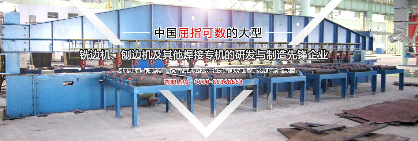 公司是中國金屬銑削切割自動焊接工藝的搖籃,公司是國內(nèi)制造有壓梁、無壓梁銑邊機、刨邊機及其他焊接專機的專業(yè)廠家。取得國家專利局頒發(fā)的最新銑、刨邊機產(chǎn)品專利證書。通過了ISO9001.2000國際質(zhì)量體系認證,并獲得了“全國用戶滿意產(chǎn)品”、“江蘇省質(zhì)量信得過AAA級品牌企業(yè)”的榮譽稱號。銷售網(wǎng)絡(luò)遍布全國,部分產(chǎn)品出口東南亞及歐美等國家。公司本著:質(zhì)量為首,用戶至上,信譽為本... 【詳細】